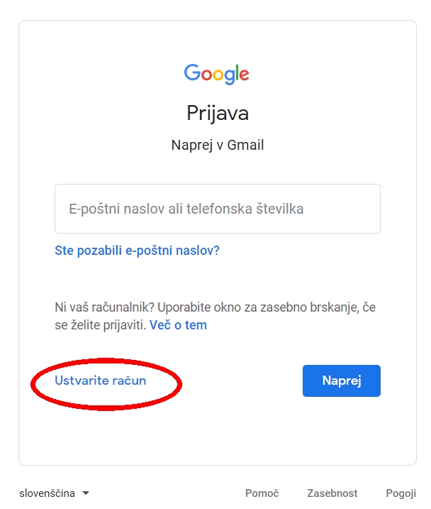 !!! lahko pa pritisnemo tudi SEM in v brskalniku se bo odprl nov zavihek www.gmail.com !!!