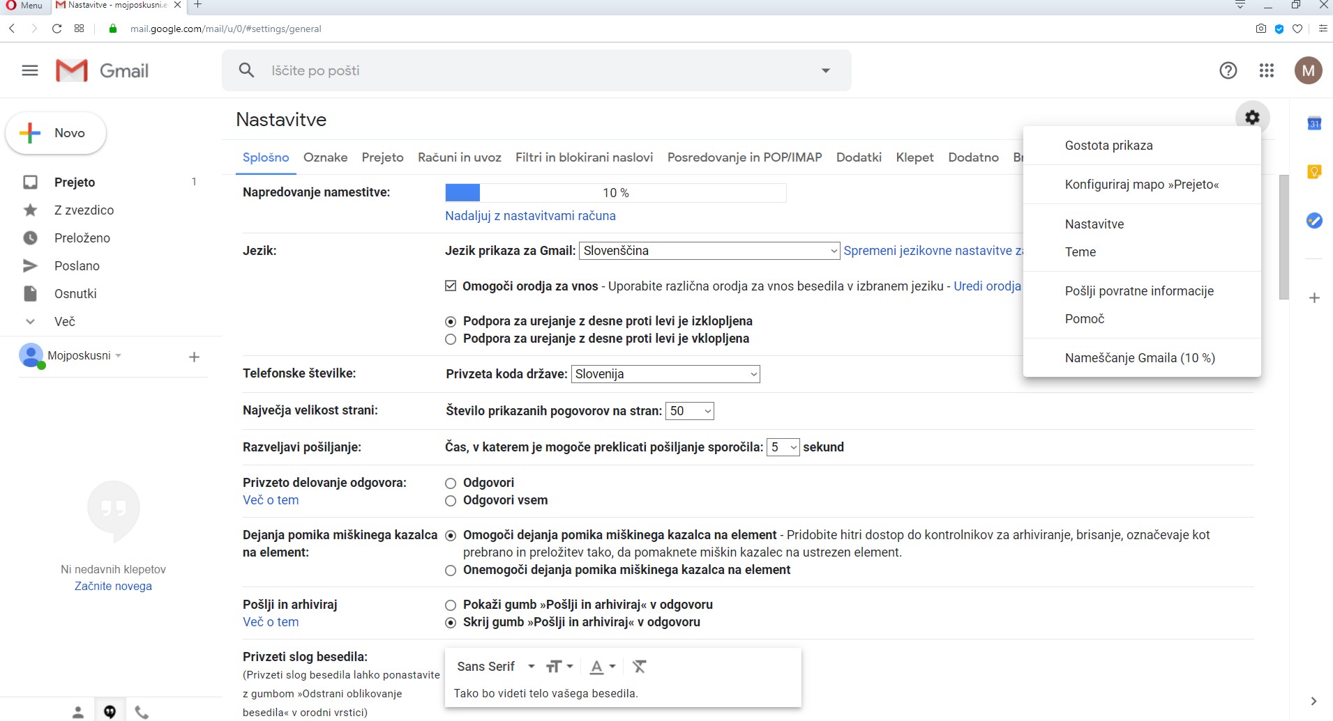 In sedaj lahko pričnemo z uporabo nove e-pošte