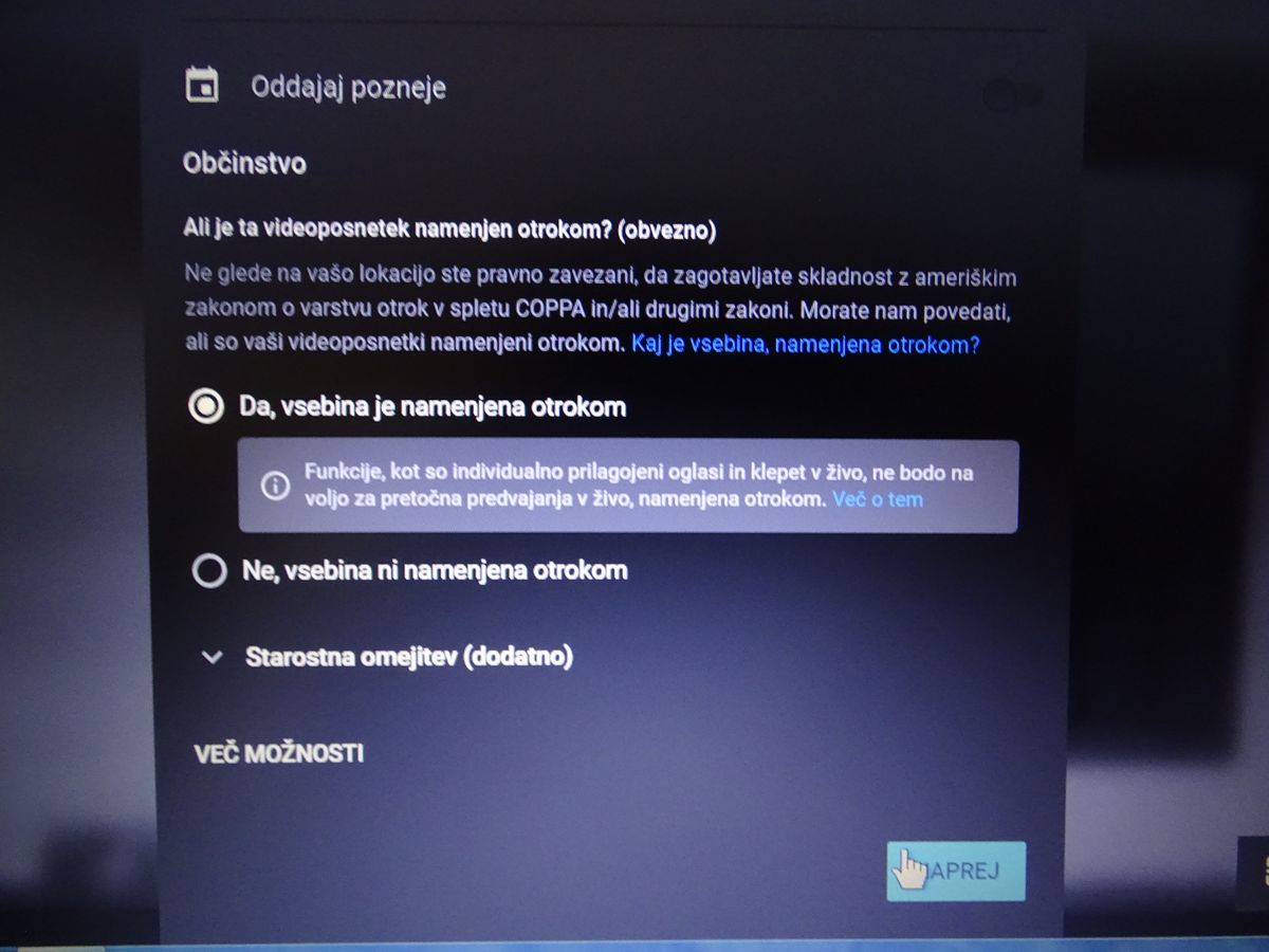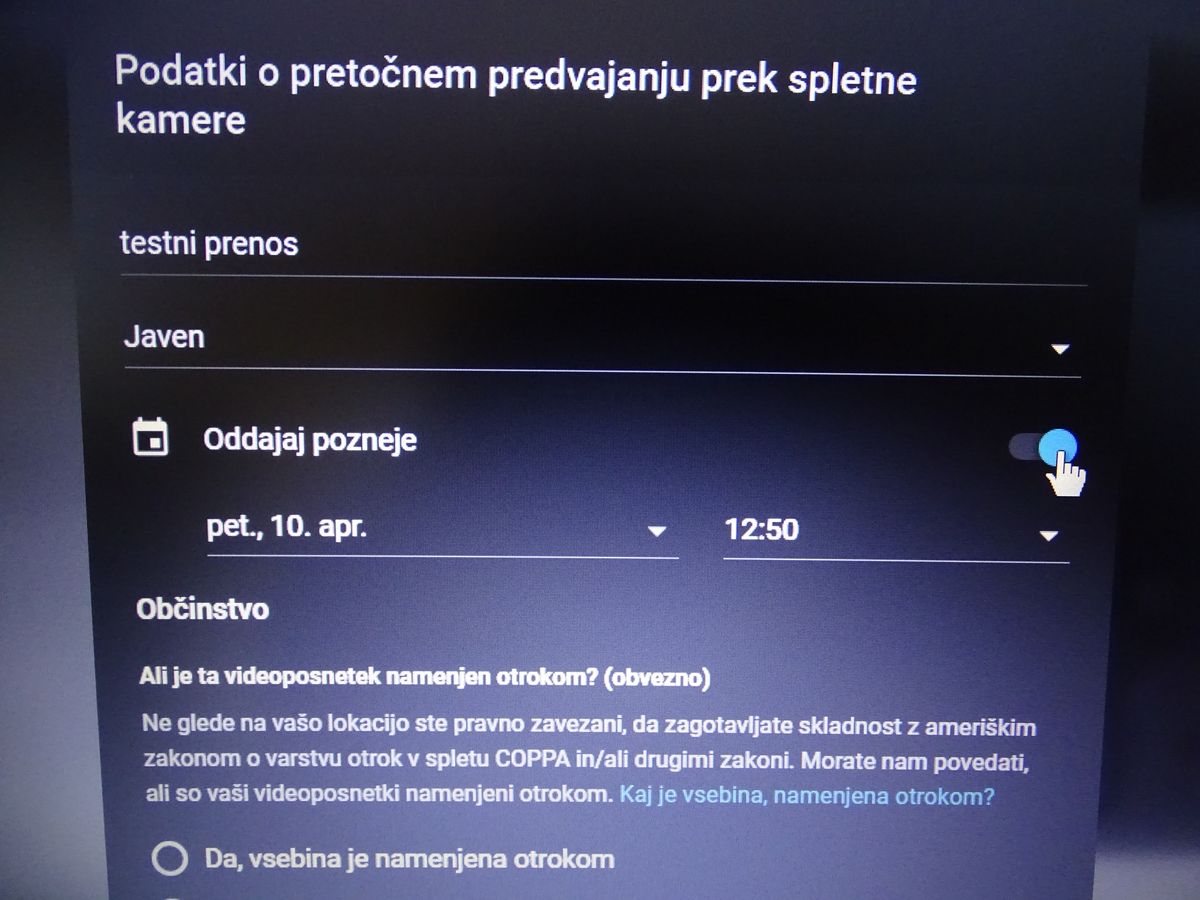 vpišemo ime posnetka / ali je objava