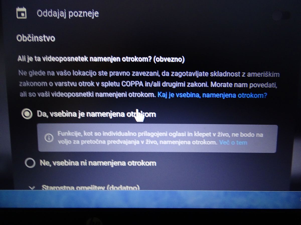 Javna / ter če je vsebina namenjena tudi otrokom