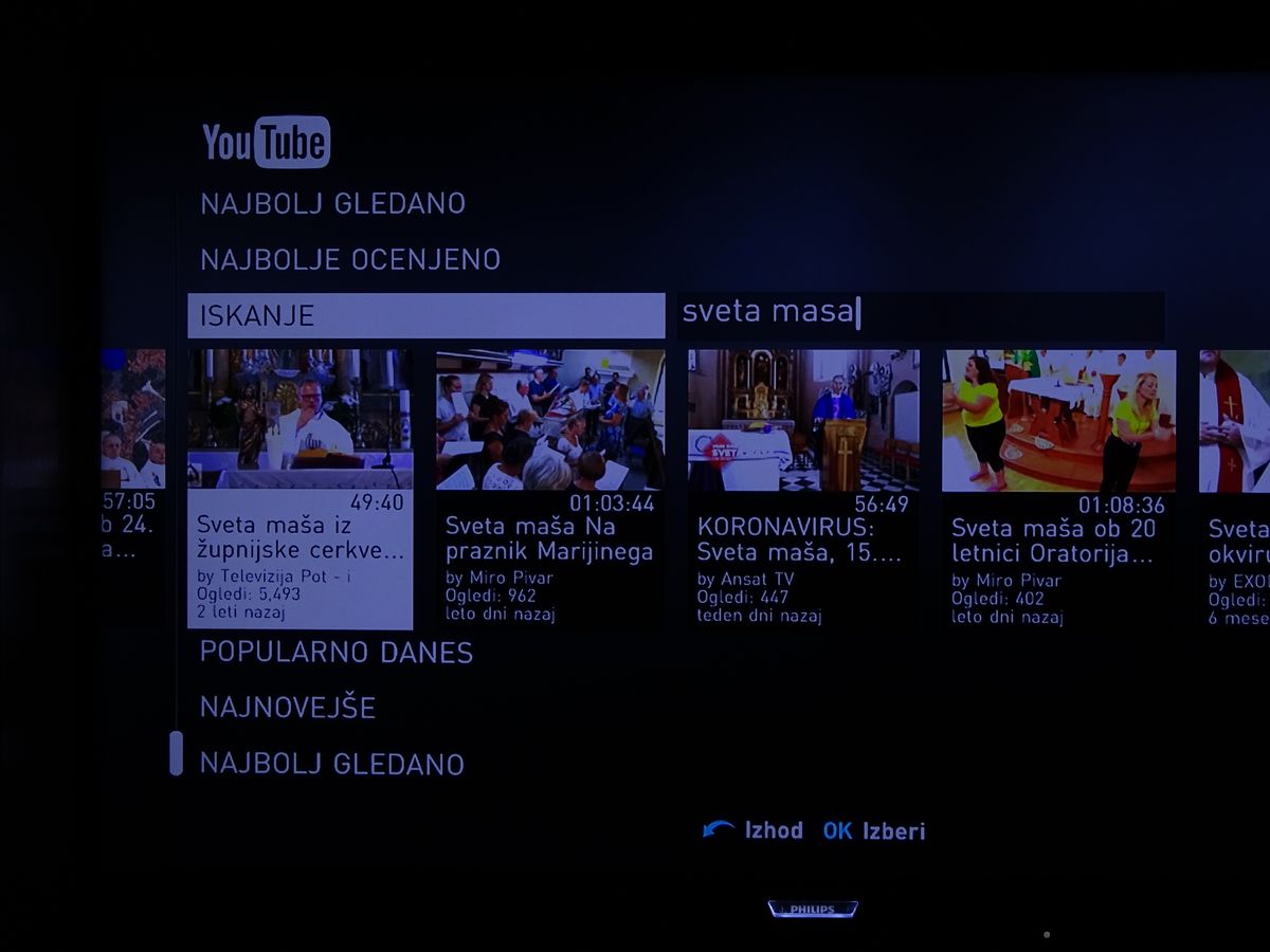 nadaljujemo v MOJ TV in poiščemo YOUTUBE